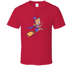 Samantha The Witch Cartoon Opening On Broom Vintage Retro Style T-shirt And Apparel T Shirt